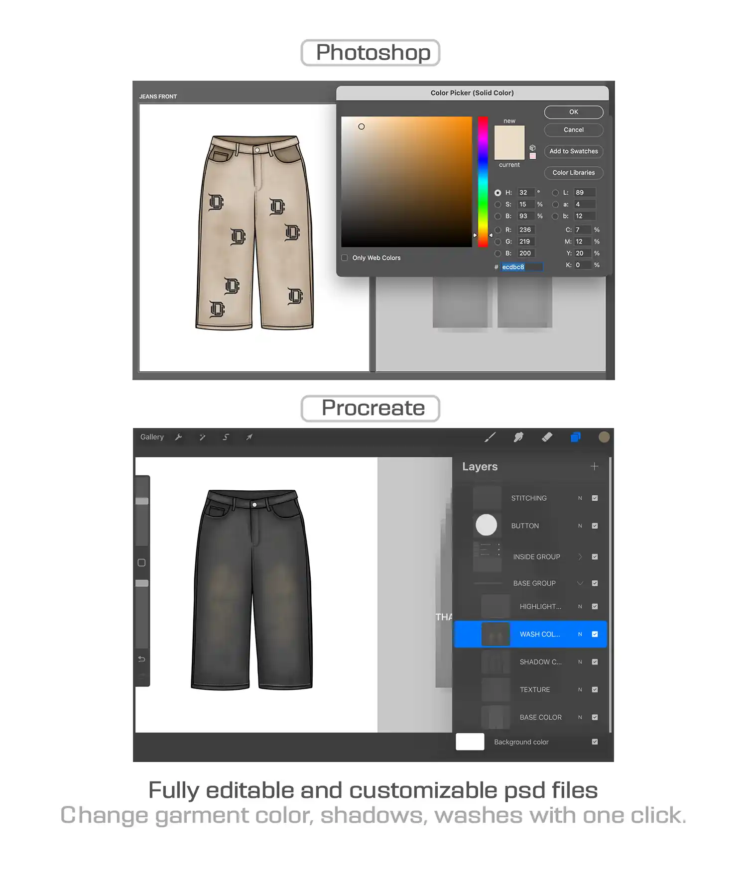 Your designs won’t look right if your mockups don’t reflect the details of the garment you’re actually creating. This Baggy Jeans mockup is built for streetwear brands who want their mockups to feel real and production-ready. With fully editable PSD layers and high-res PNGs, this mockup gives you control over colors, logos, and details like panels and brims, allowing you to exploring endless possibilities.