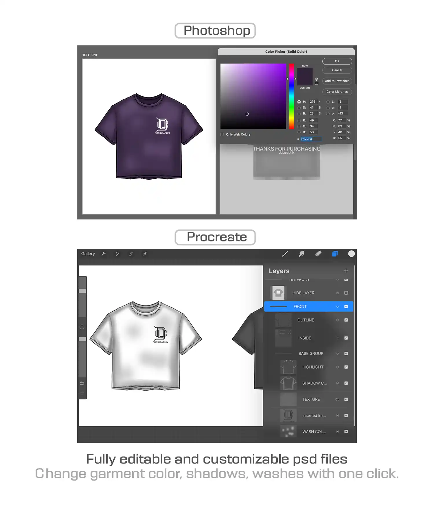 Works with any design software that supports PSD or PNG, however optimized for Photoshop.
